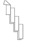 2、さらに4等分に折り目をつけ、図のように上下互い違いに、3分の2まで切り込みます。